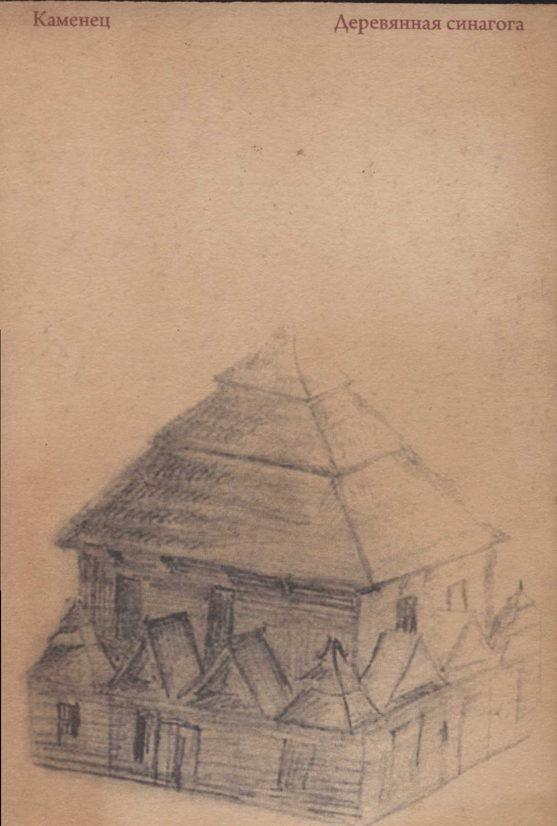 Wooden synagogue, Kam'yanets' (now Kam'yanets'-Podil's'kyi). Postcard.