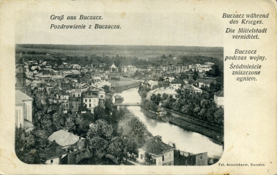 м. Бучач під час війни. Центр міста знищений пожежею. Листівка